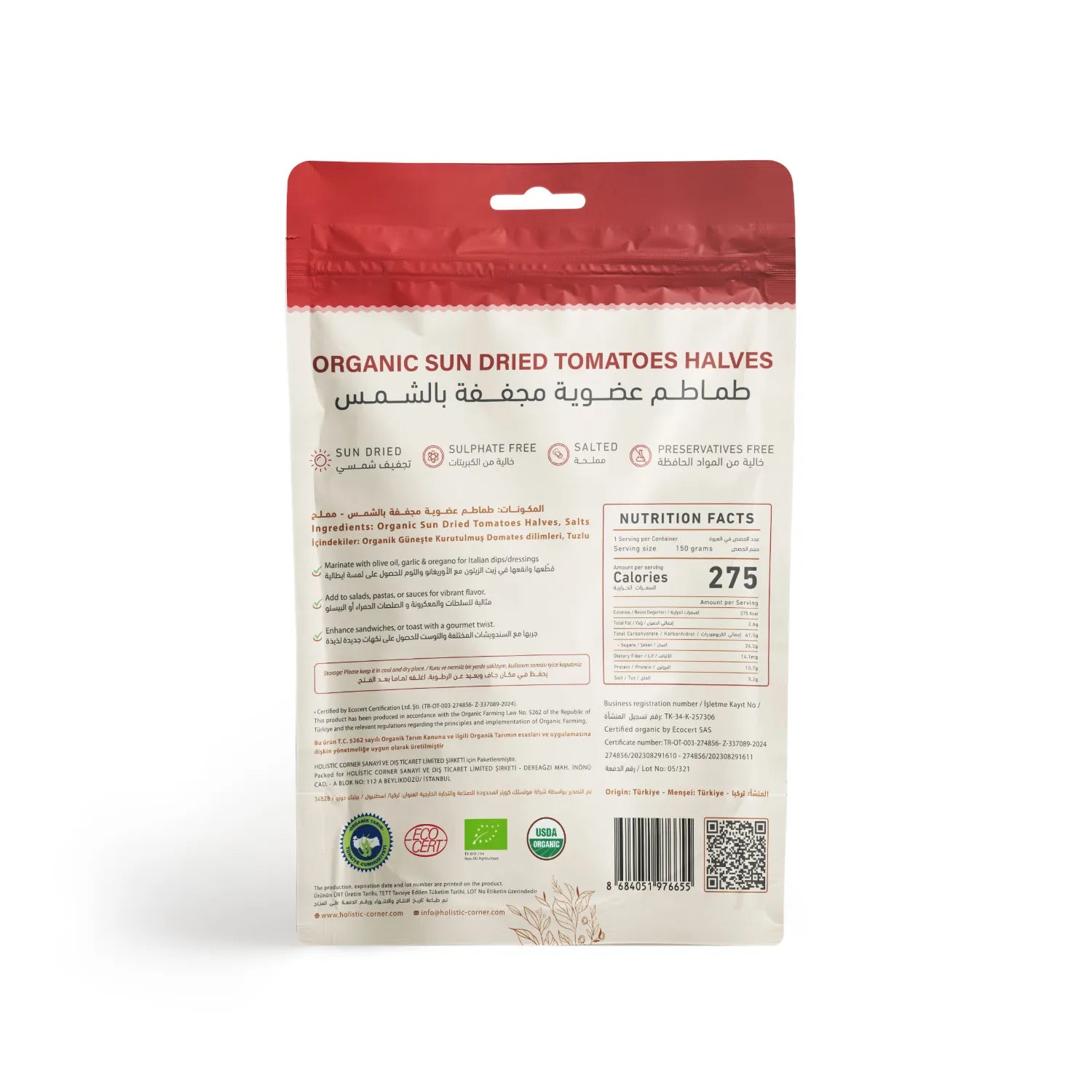 Holistic Corner Organic Sun-Dried Tomatoes Halves 150g
