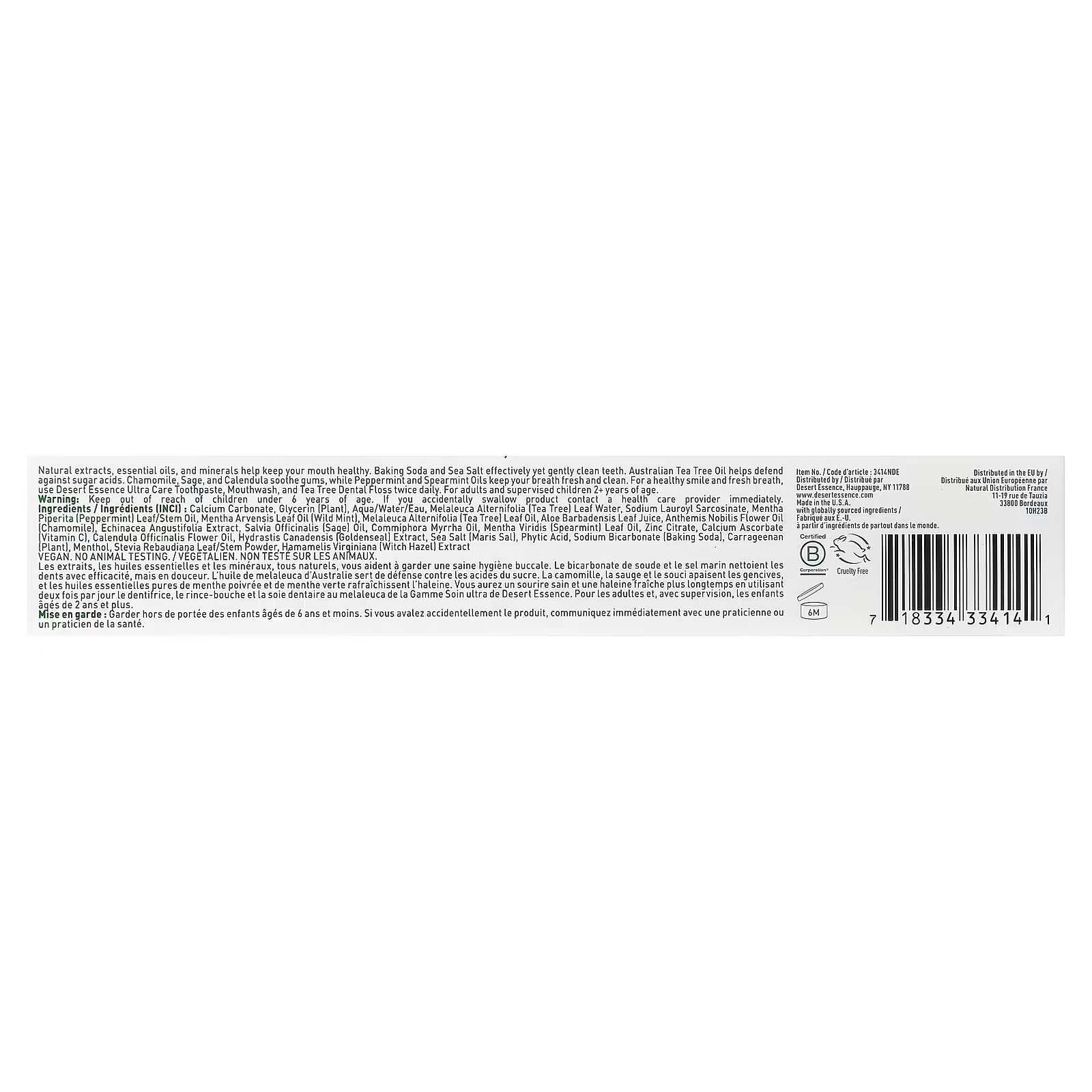 Fluoride-free Ultra Care toothpaste formulated with pure Australian Tea Tree Oil, Soothing Chamomile and Baking Soda. Provides whole mouth care, while freshening breath with a mega-dose of Mint.